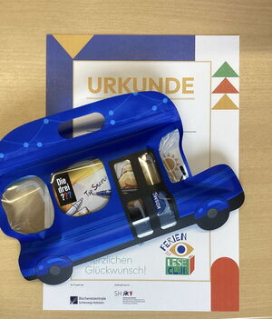 Lesen macht nicht nur Spaß und bildet, es wurde jetzt sogar von der Fahrbücherei belohnt. Alle Viertklässler, die in den Sommerferien am Ferienleseclub teilgenommen hatten, bekamen an diesem Montag ihre Urkunden verliehen und sogar noch ein tolles Geschenk. Dafür hatten die Kinder in den Ferien Bücher gelesen und mithilfe eines Steckbriefs bewertet. Die Ergebnisse sind derzeit im Bücherbus zu sehen und sollen allen kleinen und großen Leseratten Lust auf die vorgestellten Bücher machen. Wir danken der Fahrbücherei für das tolle Angebot und die kreativen Geschenke.